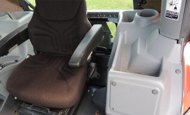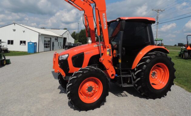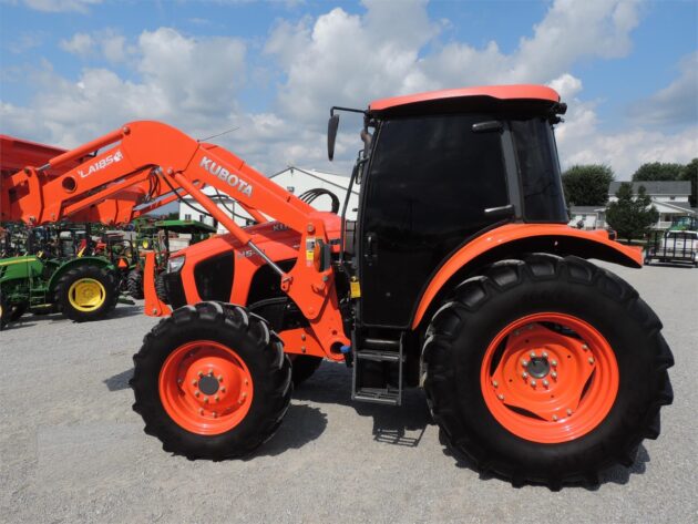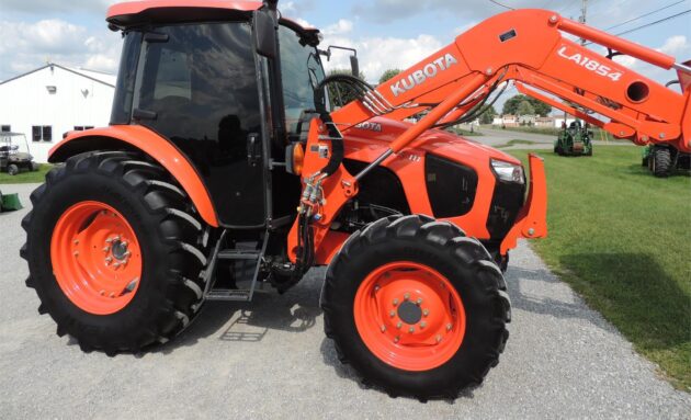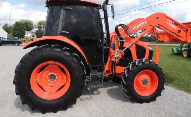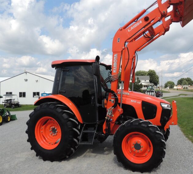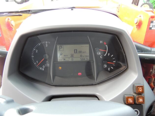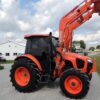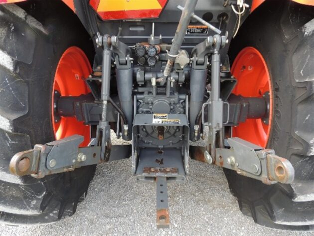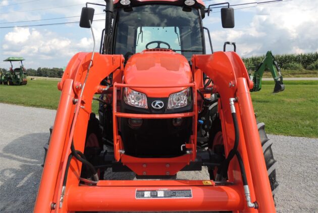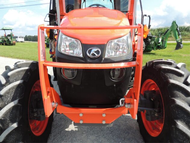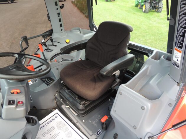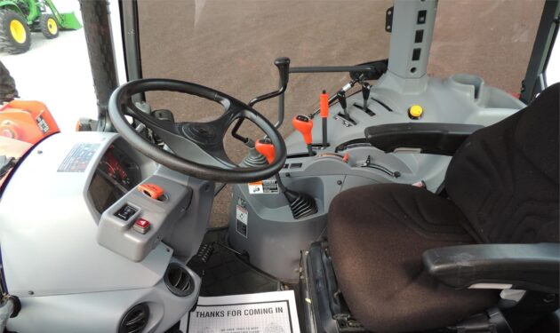 4 Cylinder Kubota Diesel Engine w/ Turbo, Engine Glow Plugs , w/ Kubota LA1854 Quick Attach Loader, 72″ Quick Attach Bucket, 8/8 Synchronized Gear Transmission, Power Reverser, Power Steering, 540 PTO, Differential Lock, Skid Steer Style Carrier, Deluxe Telescopic 3 Point Arms, 2 Rear Hyd Outlets, Engine Glow Plugs, Stabilizer Bars, Front & Rear Work Lights on Cab, Fully Enclosed Cab, AC, Heat, 2 Entry Doors in Cab, Suspension Seat, Tilt Wheel, Hand & Foot Throttle, Visibility Roof in Cab.