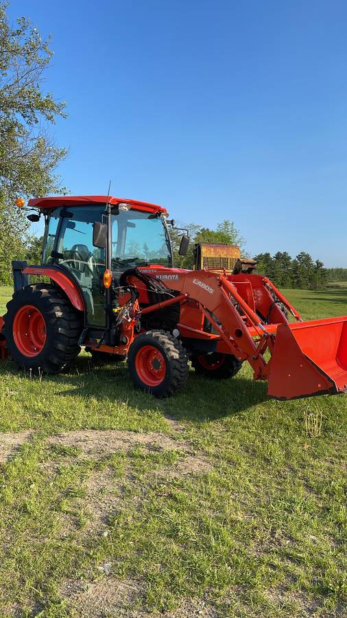 2019 Kubota L4060HSTC, 40 HP Diesel Engine, 4×4, Hydrostatic Transmission, 72″ Quick Attach Bucket, Pallet Forks, Rear 540 PTO, Three Point Hitch, Rear Quick Hitch, Quick Coupler Bucket, Power Steering, Fully Enclosed Cab, Air Conditioning / Heater.